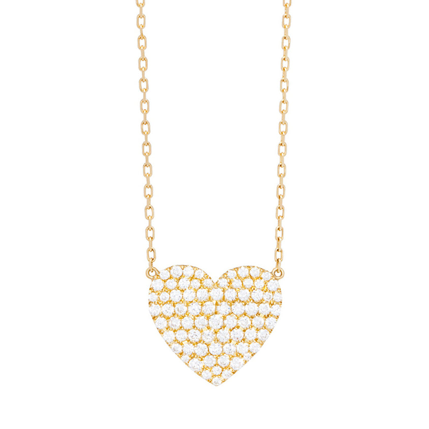 従来のハートパヴェネックレスを7~8倍大きくした、大人の女性に向けたグランタイプのネックレス。プレートの中に、ひとつひとつ丁寧に敷き詰められたダイヤモンドは、肌に纏うと、溶けるかのようにすっと馴染み、光の角度に合わせて上品に輝きます。大きくなっても繊細さを失わず、ジュエリー本来の美しさと愛らしさをより贅沢に味わえるネックレスです。