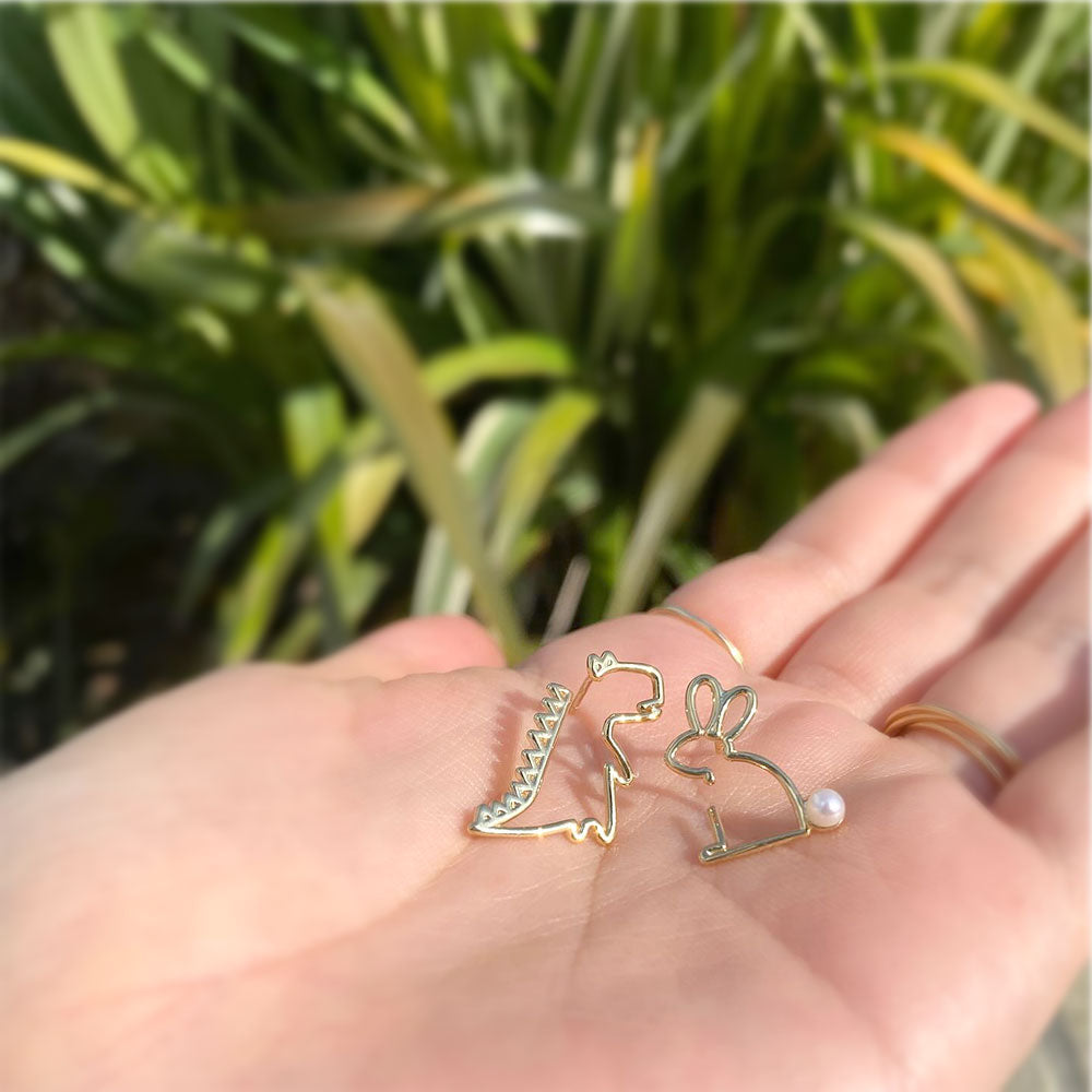 DINOピアス(恐竜) は遊び好きで優しい性格の恐竜!忙しい毎日を明るくしてくれるお友達が必要なときは、いつもこのピアスをつけていましょう。