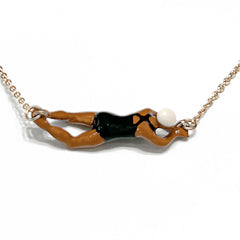 水泳好きにはたまらないネックレス。新しい体験に飛び込むときのお守りにもなります。スイムキャップのお手入れはお任せください!