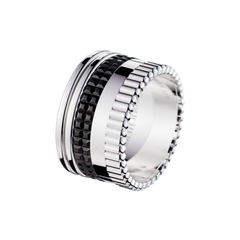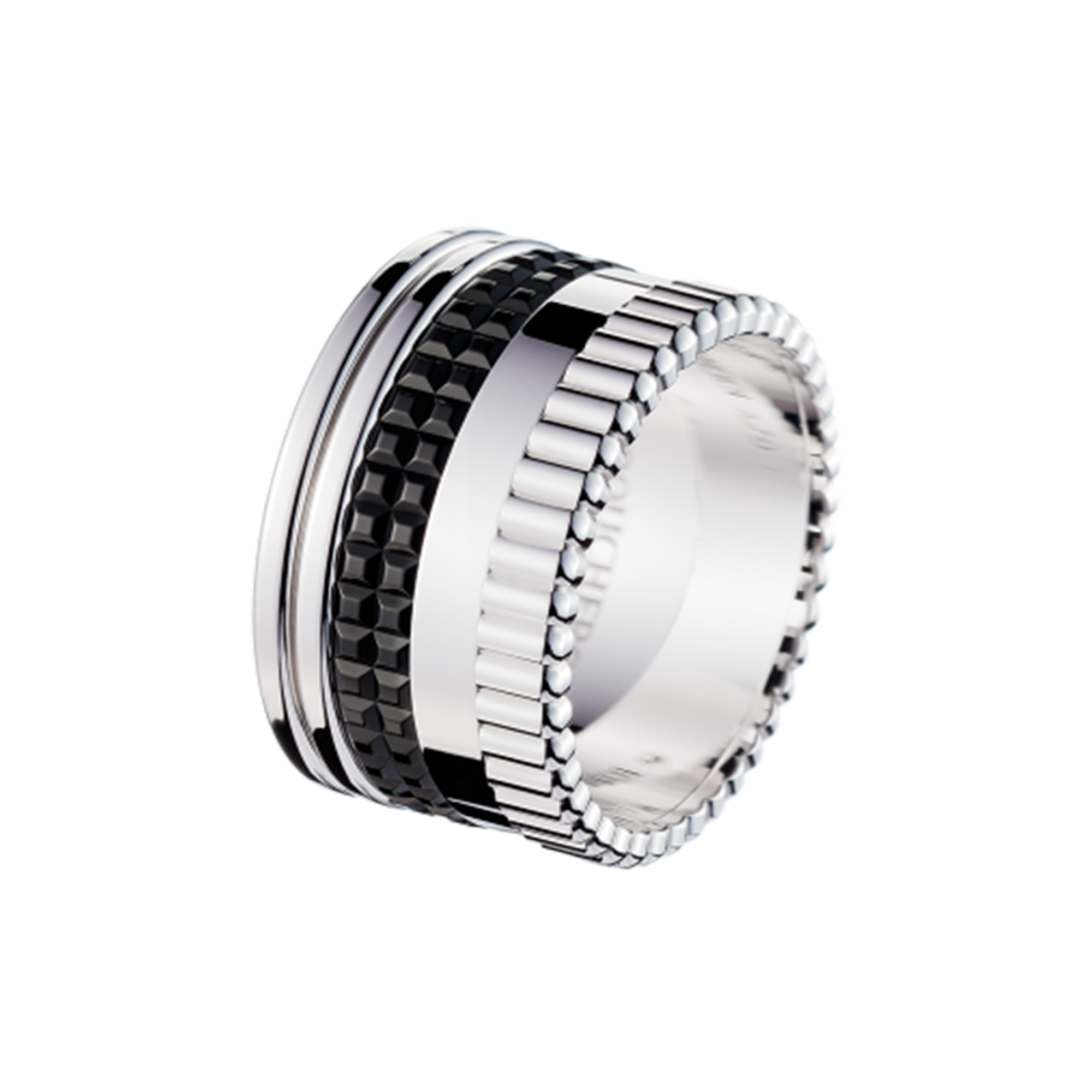 キャトル ブラック リングは、ブシュロンを象徴する4つのモチーフがパリの輝きを体現するリング。ピュアにしてパーフェクトに煌めくブラックPVDコーティングが、パリの石畳を思わせるクル ド パリ装飾の美しさを高めます。 確立したスタイルを持つリングは流行にとどまらない魅力を放ち、身に着けた人のパーソナリティや品格を表します。