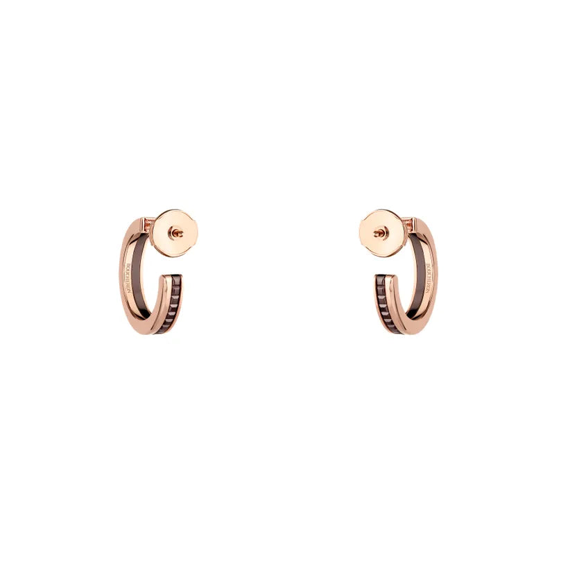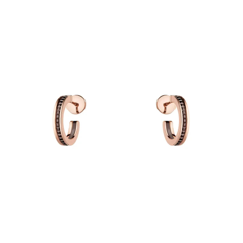 2004年に誕生したキャトル クラシックの要素を受け継いで生まれたフープイヤリング。ピンクゴールドのゴドロンと、ヴァンドーム広場の石畳を彷彿とさせるブラウンPVDのクル ド パリのコードが耳元で煌めきます。グラフィカルでモダンなデザインは、どんなスタイルにもさりげない個性を添えてくれます。