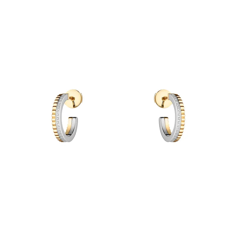 グラフィカルな存在感と、繊細な印象を兼ね備えたイヤリング。創業家と深いつながりを持つクチュールを象徴するグログランのコードを、ダイヤモンドの輝きが際立て、小ぶりながら鮮烈な印象を見る人に残します。
