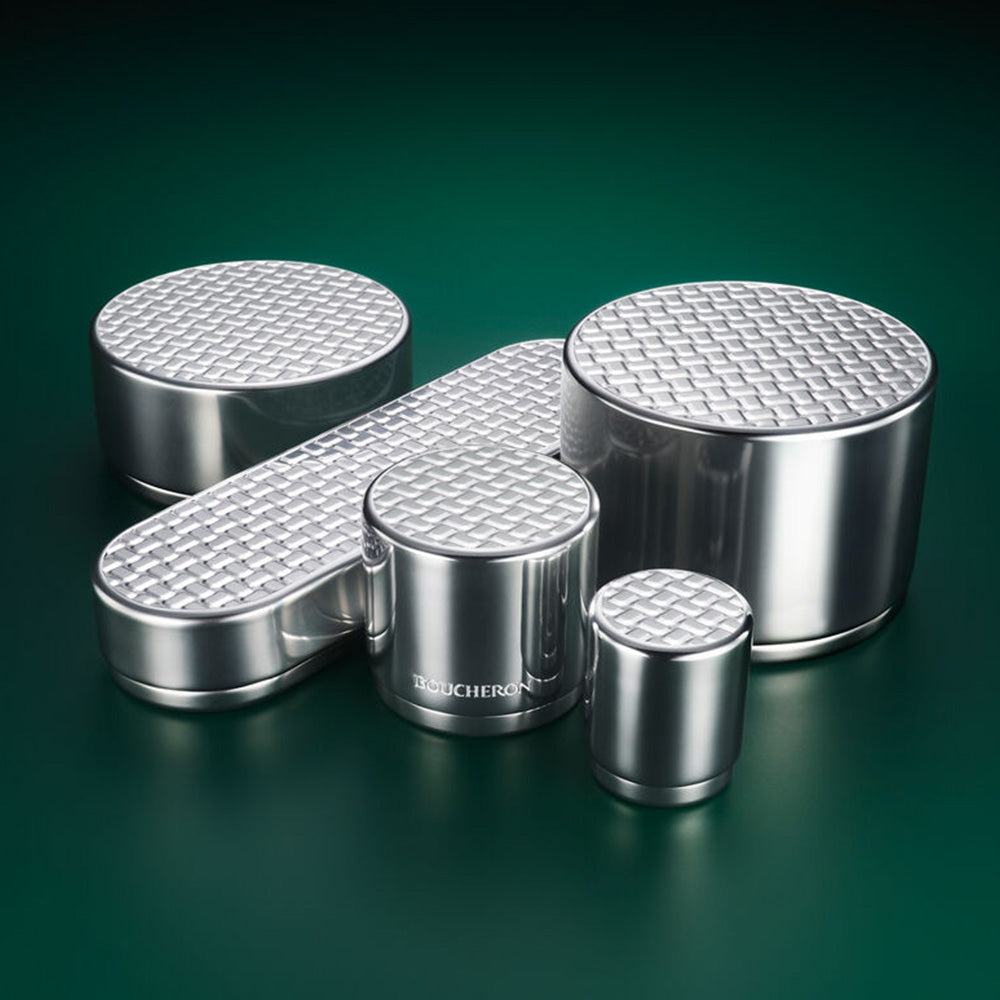 ブシュロンは従来のジュエリーケースを見直し、リサイクル可能な2つの自然素材であるアルミニウムとウールフェルトのみを使用したパッケージを開発しました。環境に対してのコミットメントと意識の証として、オブジェのように飾ることもでき、コレクションとして集めたくなるようなケースです。
