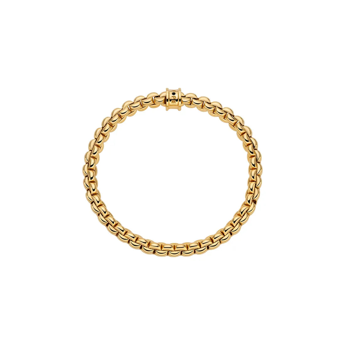 K18ゴールド製のフレキシブルなブレスレット。ゴールドのロンデルがあしらわれています。
