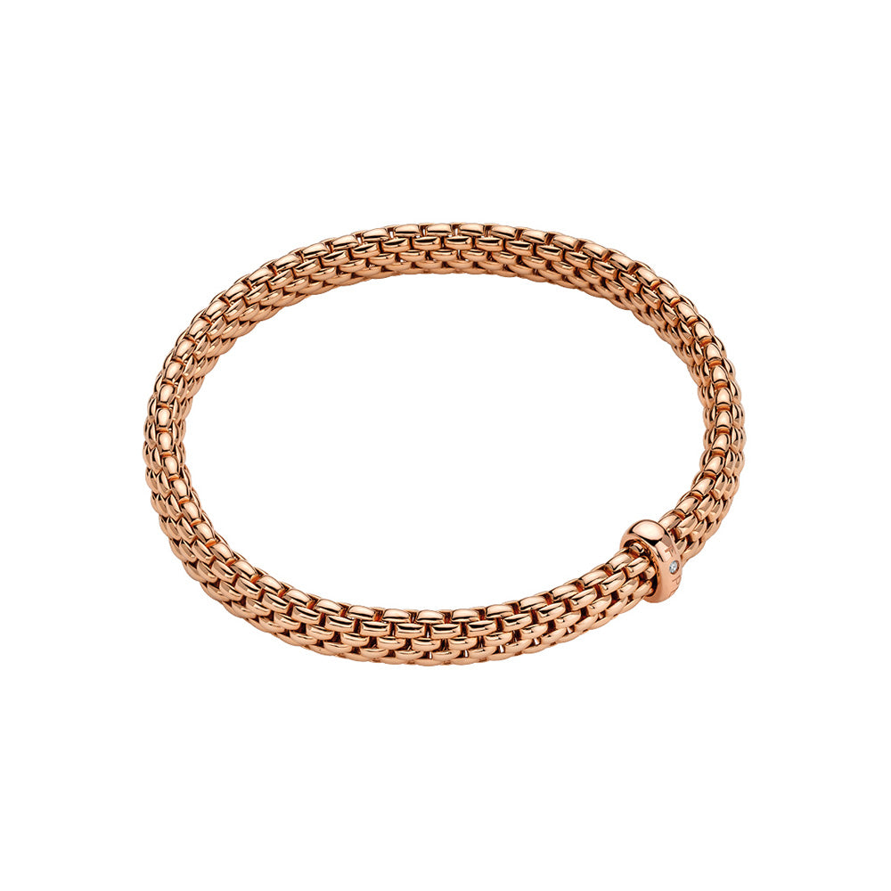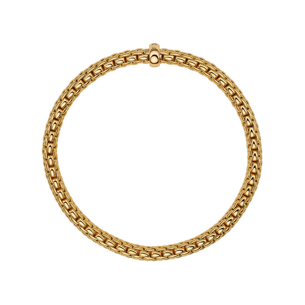 5つのコアコレクション、EKA(エカ)、PRIMA(プリマ)、SOLO(ソロ)、VENDOME(ヴァンドーム)、PANORAMA(パノラマ)のFLEX’ITブレスレットで構成されるマストハブは、イエローゴールド、ホワイトゴールド、ローズゴールドの3色展開。プレーンゴールドのロンデルには、FOPEの「o(オー)」に1粒のホワイトまたはブラックダイヤモンドがセットされています。さりげないアクセントは、男性と女性の両方にアピールします。