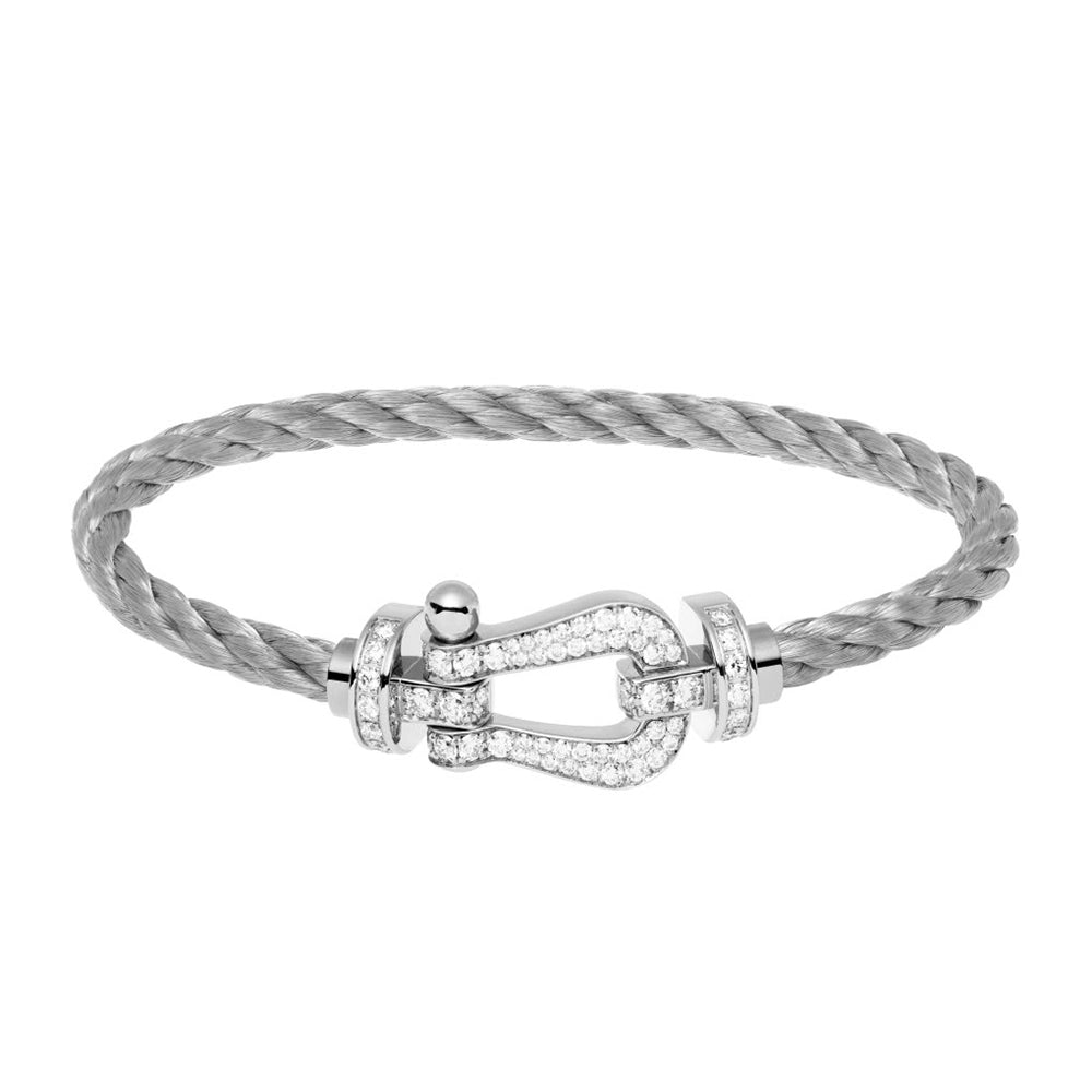 | 素材 | フルパヴェホワイトダイヤモンドホワイトゴールドバックルブリリアントカットホワイトダイヤモンド64粒合計0.90カラット/GVS.フォース10スティールケーブルスティールエンド |