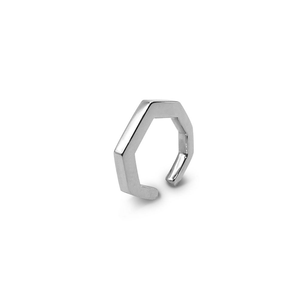 オクタゴンシェープのイヤーカフ。小さいながらも適度なボリュームが耳たぶをぴったりと包みこむ立体的なデザイン。