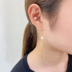 動きに合わせて揺れるひと粒パールがアクセントのチェーンピアス。パールは、あえて完璧な球体ではないものをチョイス。シンプルに単体でも充分な個性に。また、唯一無二の“いびつさ”を、レイヤードコーディネートの核にしても。