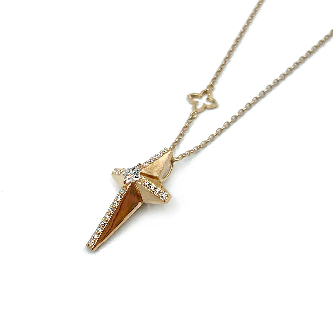 リリー社が使用するのは最高級原石であるソーヤブルだけ。そのソーヤブル原石の正八面体(ピラミッドを上下に合わせたような形)をモチーフに取り入れ、ダイヤモンド内部から放射状に放たれる輝きも表現しています
