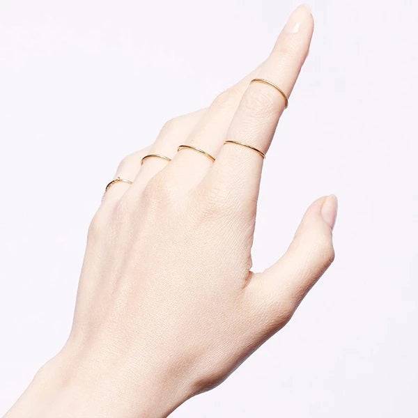 願い事をかけるように、ひとつずつ増やしていきたい華奢なリング。1本の指に重ねてつけても、それぞれ違う指にひとつずつつけても素敵です。