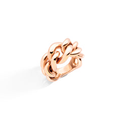 「カテネ」は、ポメラートのチェーンづくりの豊かな伝統をそのまま感じさせる非常に特徴的なデザインです。 「カテネ」 は、何年にもわたってそのエフォートレスなエレガンスで特に人気の高いコレクションの一つとなりました。 リングはセンショアルな輪郭で有名な「グルメット」リンクをデザインモチーフとして、シルクのようになめらかでゴージャスなリングに仕上がっています。リンクが関節を描くようにして堅固なシャンクに連結しており、指の上でやさしく動きます。