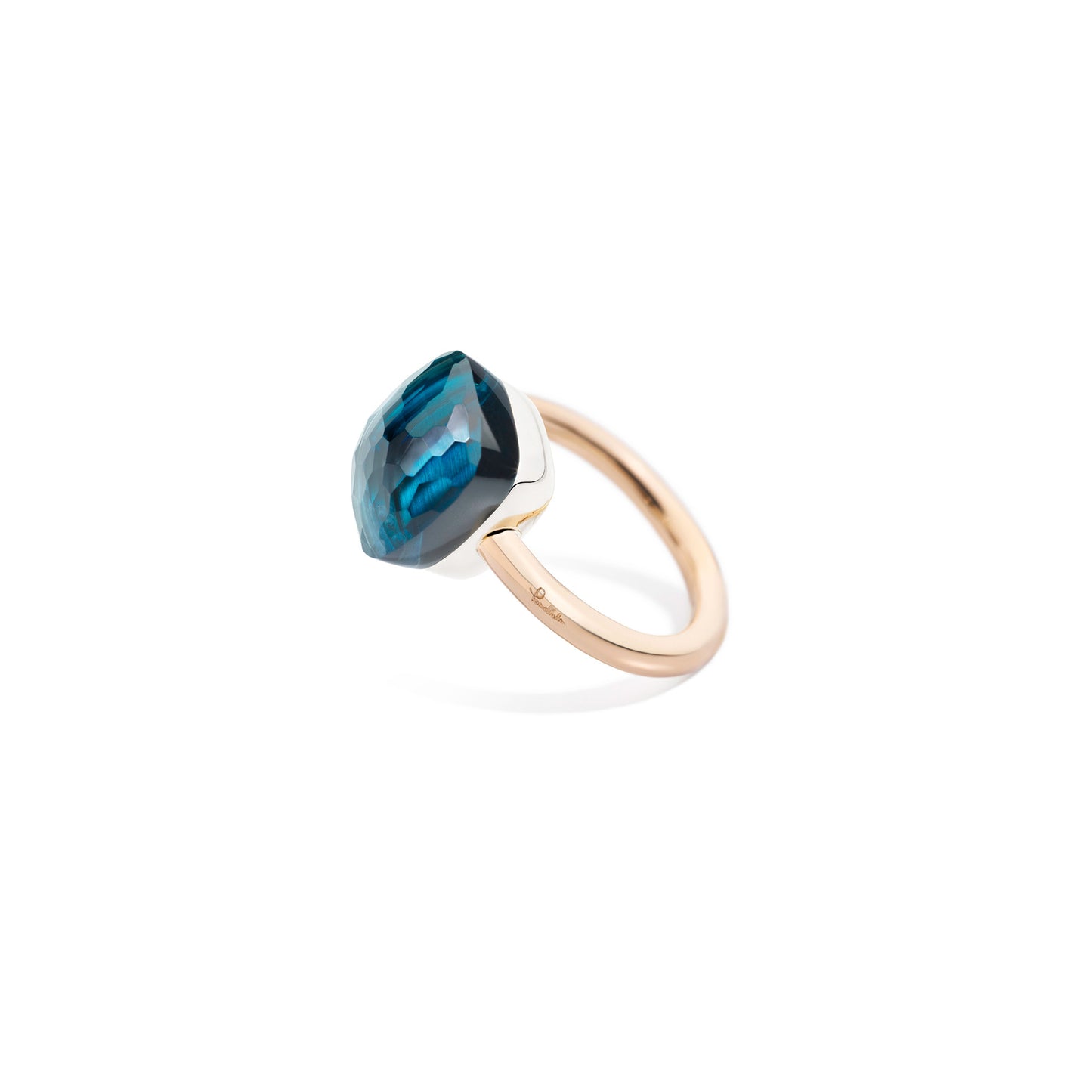 カットされたロンドンブルートパーズをあしらった、ローズゴールドのリング”ヌード・マキシ”です。マウント部はホワイトゴールドです。