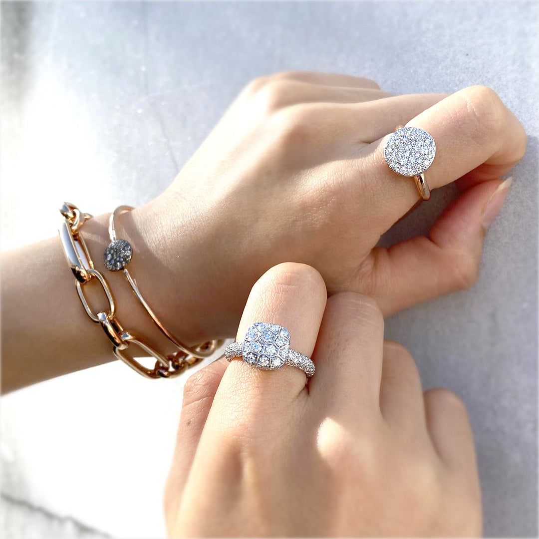 トレンドに敏感な女性たちが愛してやまない、ミラノ生まれのジュエラー「ポメラート」。ゴールドジュエリーを得意としてきたポメラートは、高度な金細工技術によって表現された他にはない大胆なコレクションの数々で世界中の女性を魅了してきました。瑞々しいカラーストーン、艶やかなゴールド。イタリア生まれの豊かな美しさで、毎日に彩りを与えてみてはいかがでしょうか。