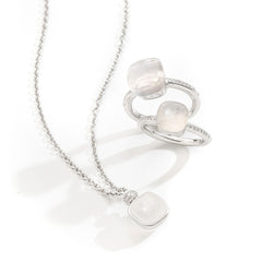 | 素材 | K18 MNGホワイトゴールド、ミルキークオーツ1粒(4.9カラット)、ダイヤモンド18粒(0.1カラット) |