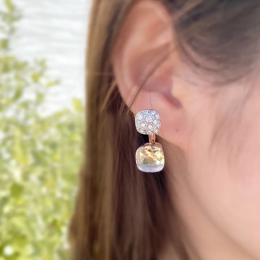 ヌードは、ポメラートの真髄を体現するコレクションです。その大胆なデザインは、メゾンを代表するアイコニックな作品として君臨しています。宝石を従来の枠から解き放ち、その素の輝きを際立たせるという革新的なコンセプトから生まれたヌードは、ポメラートならではの個性とミラノの控えめな優雅さを見事に表現しています。一つ一つのファセットが、芸術的な革新性と卓越した職人技の物語を語りかけます。 このヌード トワ・エ・モワ ピアスは、クラシックサイズのホワイトトパーズとホワイトダイヤモンドのパヴェセッティングが織りなす魅惑的な対話を演出しています。 このピアスは、コレクションの創造的な融合という精神を具現化し、大胆でありながら洗練された着け心地の良さを兼ね備えた逸品です。