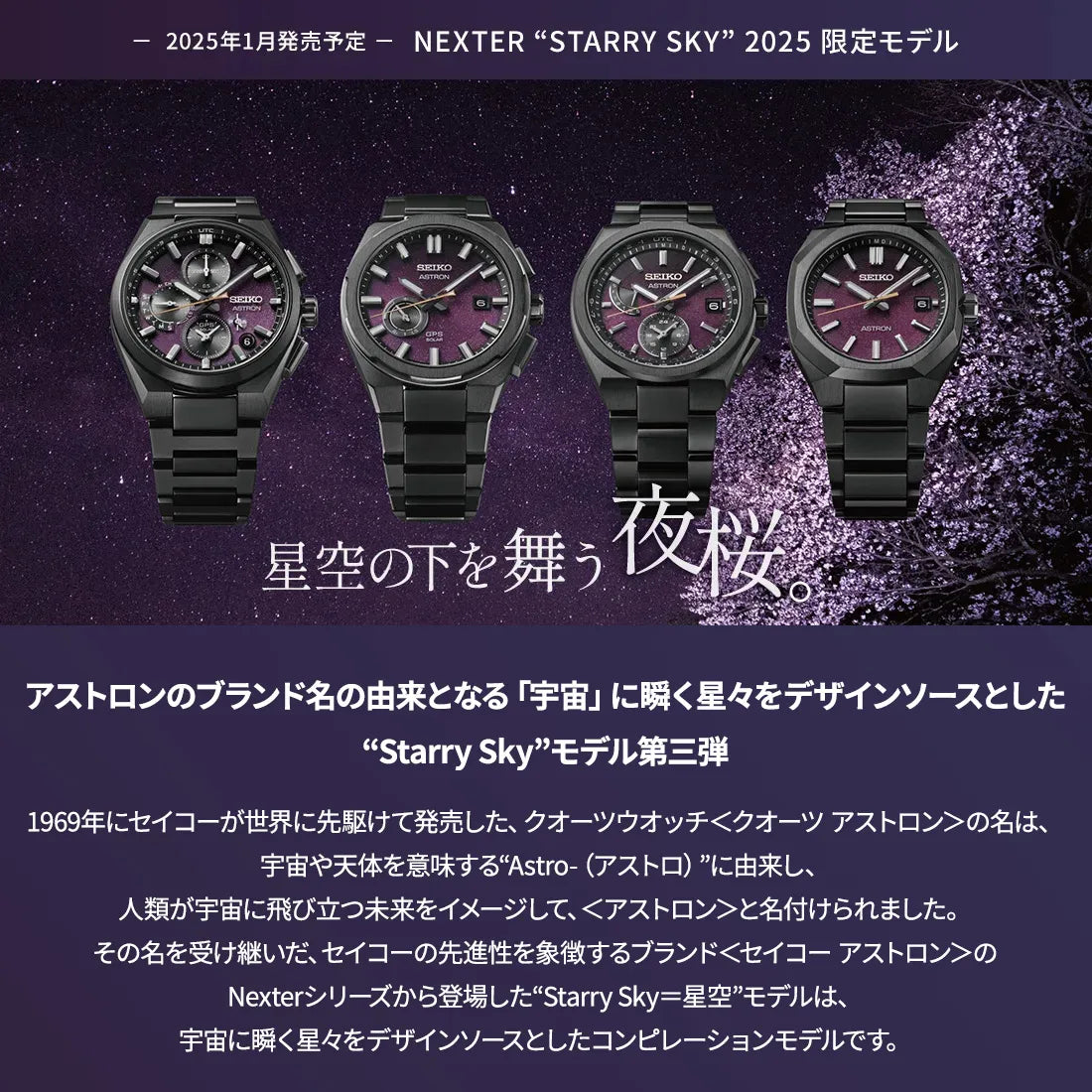 <セイコー アストロン>Nexterシリーズより、“Starry Sky”をテーマとしたGPSソーラー2モデル、ソーラー電波2モデルが数量限定で発売予定。