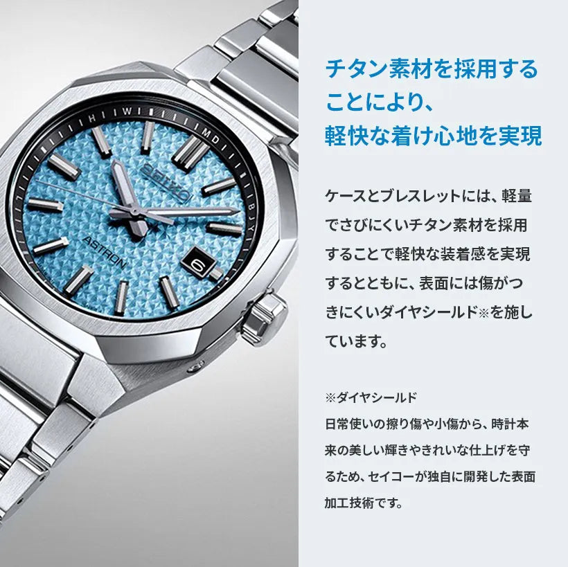 ケースとブレスレットには、軽量でさびにくいチタン素材を採用することで軽快な装着感を実現するとともに、表面には傷がつきにくいダイヤシールド※を施しています。