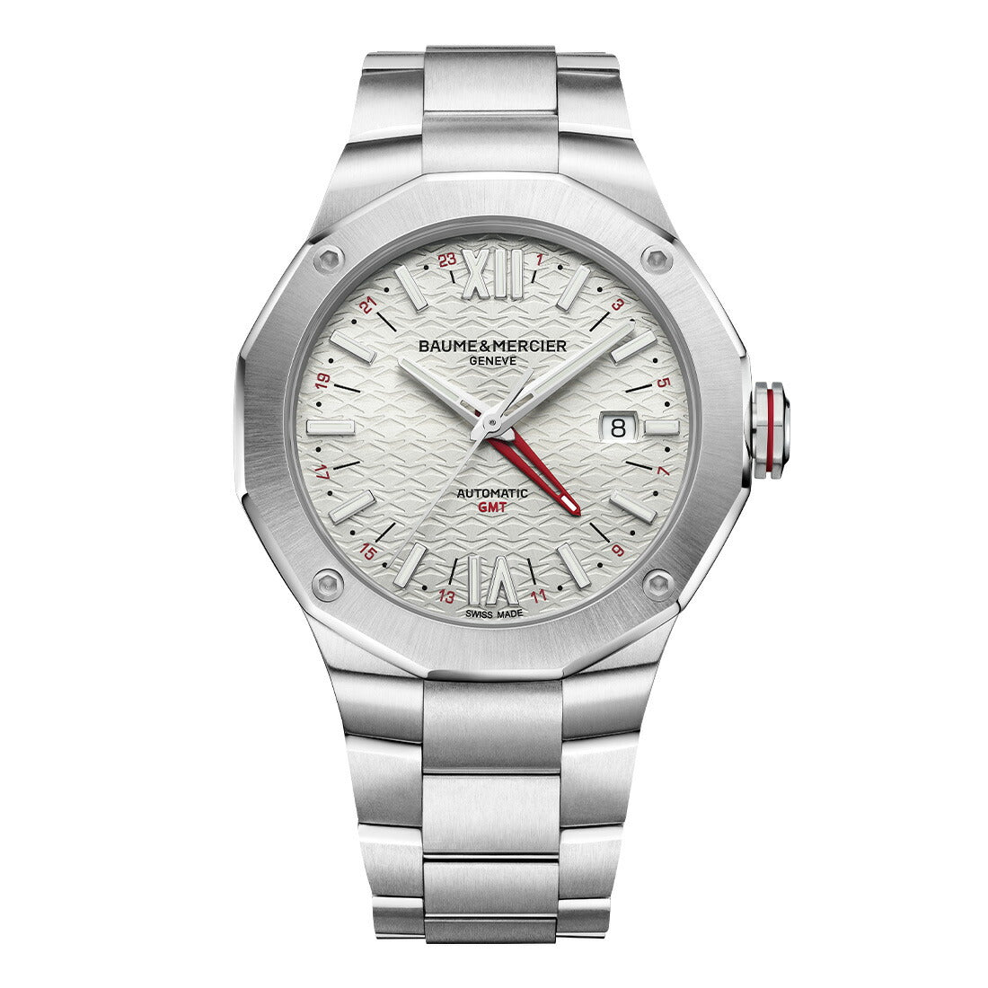 ブランド BAUME&MERCIER/ボームアンドメルシエ 商品名 リビエラ GMT ムーブメント 自動巻き(ETA 2893)、パワーリザーブ42時間、石21個、振動数28,800 時 機能 時、分、秒、デイト、GMT(24H) ケース 12角形