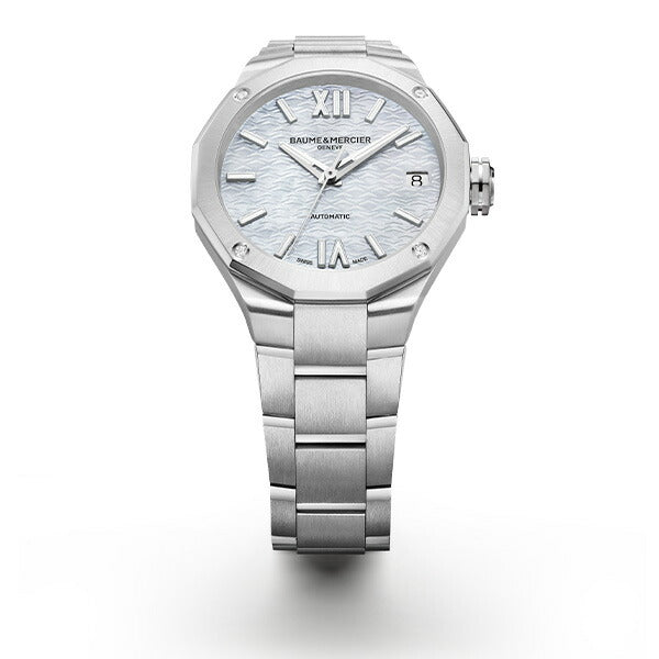 “スイス製”自動巻きムーブメントを搭載したこのリビエラは、華やかさを演出するホワイト・マザー・オブ・パールのダイヤルにメタルブレスレットを備えています。アクティブさと華やかさ両方をお求めの方にお勧めできるタイムピースです。