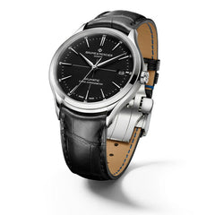 スティール, ポリッシュ・サテン仕上げ フルケースバック 文字盤: ブラックのラッカーダイヤル ブレスレット: 細やかなステッチが施されたブラックのアリゲーター ストラップ |