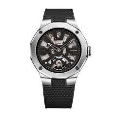 リビエラ 10721は、直径42mmのサテンポリッシュ仕上げが施されたステンレススティール製の12角形スケルトンケース、傷つき防止加工サファイアクリスタルを両面に装備しています。ADLC加工が施されたサンドブラスト仕上げのステンレススティールの4つのスクリューで固定され、ポリッシュ仕上げとサンサテン仕上げが施されたステンレススティール製ベゼルが輝きます。キャンバス型押しの一体型ラバーストラップは、ツールなしで交換可能なインターチェンジャブルストラップ。