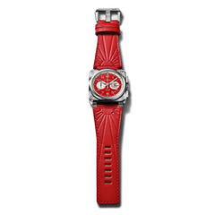 ステンレススティール 文字盤: 光沢のある赤いラッカードダイヤル、オフホワイトの転写数字、セミマット仕上げのオフホワイトカウンター、オフホワイトのフランジが特徴です。 カバーガラス: 反射防止サファイアクリスタル ストラップ: カーフストラップ バックル: ピン。サテン仕上げとポリッシュ仕上げのステンレススチール。 |