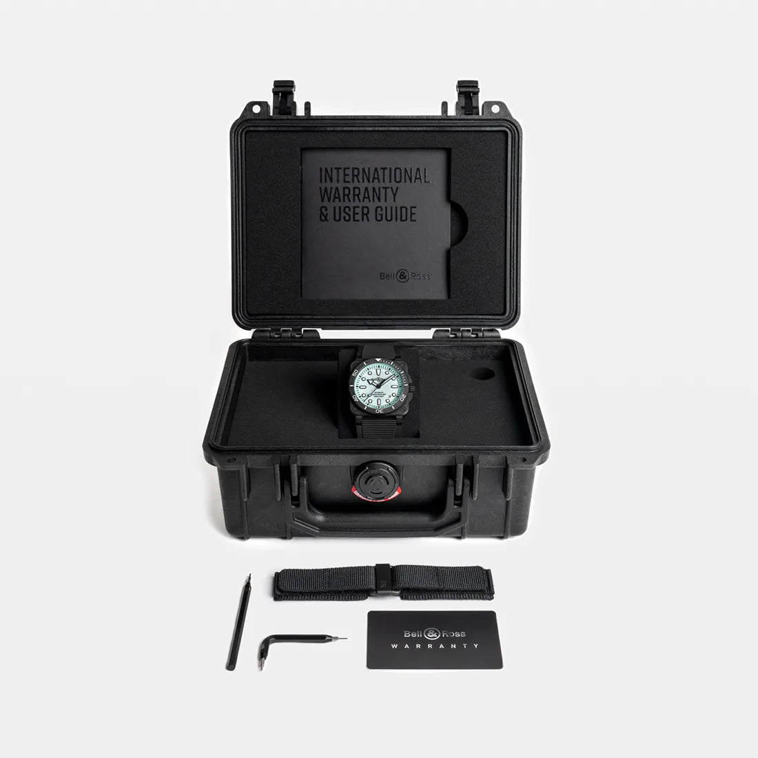 Bell & Ross初の角型ダイバーズウォッチ、BR 03 Diver は、「ダイバーズウォッチ」に関する国際規格に対応しています。2024年デビュー7周年を記念し、デザインをよりモダンに刷新し、ムーブメントを完成させました。
