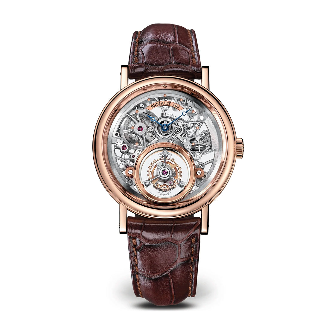 トゥールビヨン・スケルトン、 18Kローズゴールド、手巻、 トゥールビヨン軸直結