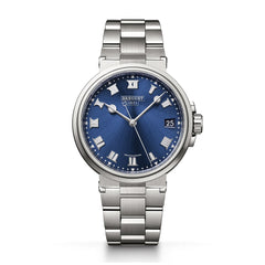 マリーン。自動巻、日付カレンダー。ひげゼンマイにシリコン素材。サファイア・ケースバック(透明裏蓋)。ねじ込み式リュウズ。10気圧(100m)防水。ケース径:40mm。