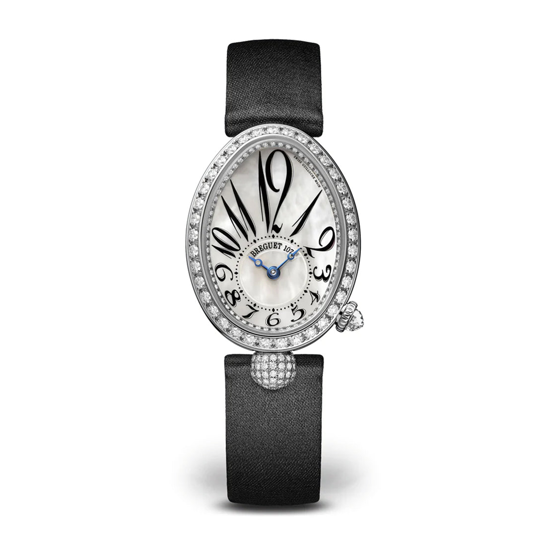 Dial ナチュラルホワイト・マザーオブパール、個別番号とBreguetのサイン。6時位置にオフセットのアラビア数字のチャプターリング。ブルー・スティールのブレゲ針。