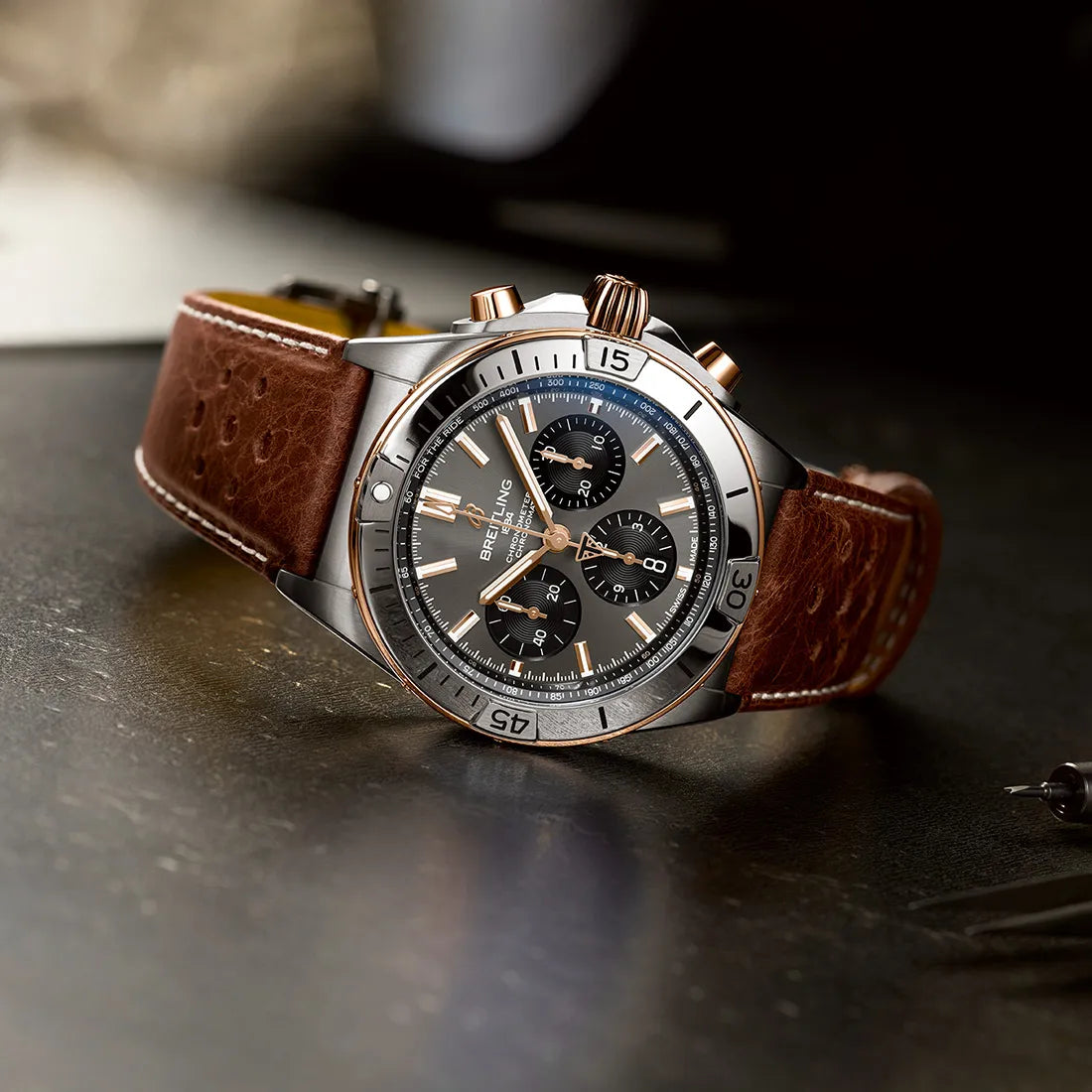 ブライトリングの万能のモデル、クロノマットに加わった、英国のモーターサイクルブランド・トライアンフとのコラボレーションモデル。