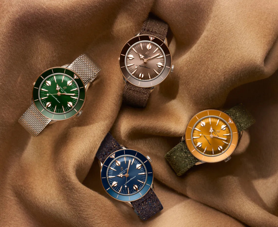 海辺でのスタイルを完成させる、ブライトリングが初代スーパーオーシャンに捧げるカラフルなオマージュ。