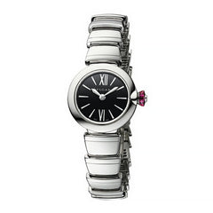 太陽から月まで様々なシェードを讃えるピッコラ ルチェア ウォッチ。ブラックのダイアルに特徴的なスティール製ブレスレットという印象的なコントラストカラーで輝きを放ちます。光と時間の切り離せない関係からインスピレーションを引き出したルチェア。古代ローマに起源を持つ最古の計時機器の1つ、日時計に敬意を表しています。光(イタリア語で「luce」)のパワーを捉えるルチェア。日時計を模したラウンドケースが輝き、ローマ数字のインデックスが歴史の今を刻みます。一つひとつのウォッチのリューズにあしらわれた1粒のカラフルなジェムストーン。ローマのジュエラー、ブルガリの紛れもないトレードマークです。