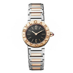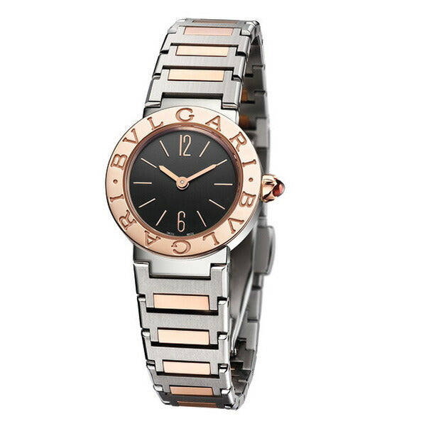 23 mmのステンレススティール製ケース ロゴ入りの18Kピンクゴールド製ベゼル / カボションカットのピンクストーンをあしらった18Kピンクゴールド製リューズ ダイアル: ブラックラッカー仕上げのダイアル ブレスレット: 18Kピンクゴールド&ステンレススティール製ブレスレット |