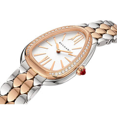 33 mmのステンレススティール製ケース 18Kピンクゴールド製ベゼルにダイヤモンドをセッティング / 18Kピンクゴールド製リューズにカボションカットのピンクルベライトをセッティング ダイヤル: ホワイトのダイアル ブレスレット: 18Kピンクゴールドとステンレススティール製ブレスレット |