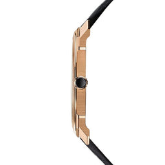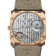 40mm極薄サテンポリッシュドピンクゴールド製ケース(厚さ6.40mm)。シースルーケースバック。ポリッシュド18Kピンクゴールド製ねじロックリューズに、セラミックインサートをセッティング。 ダイアル: マットブラックのダイアル ストラップ: ミシシッピアリゲーターレザー フックバックル |