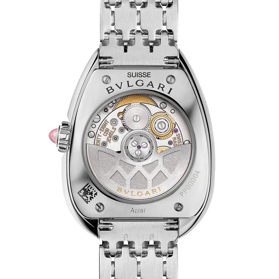 ブルガリは3年のリサーチを経て、我々の専門性を忠実に反映させたSerpenti機械式ムーブメントサーガという新しいチャプターの1ページを開きます。小さいサイズ(直径19㎜ / 厚さ3.9㎜)ながら50時間のパワーリザーブがあります。