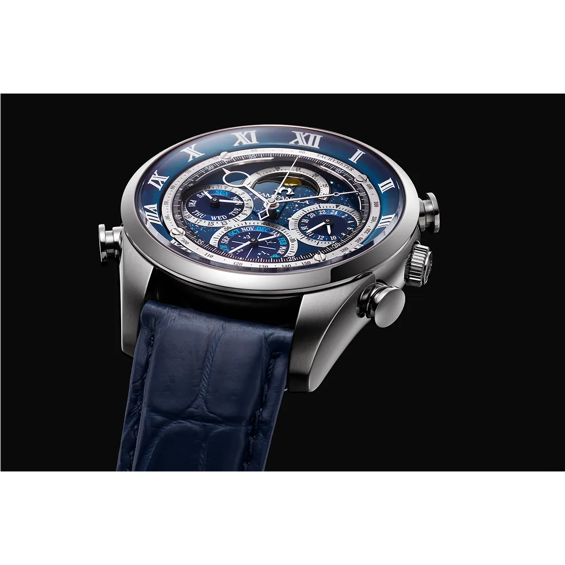 ミニッツリピーター、ムーンフェイズ、パーペチュアルカレンダー、クロノグラフの4大複雑機構を搭載するクオーツウオッチ。