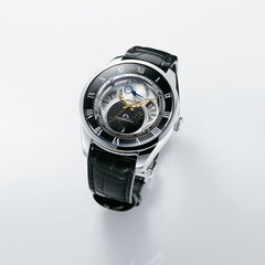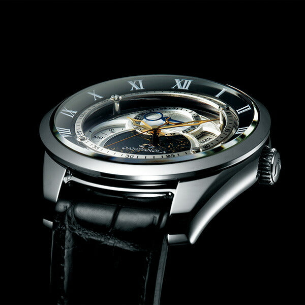 ステンレス ダイヤル: 漆塗り文字板(電気鋳造+漆塗り) ガラス: デュアル球面サファイアガラス (無反射コーティング) バンド: ワニ革 / 三ツ折れプッシュタイプ |