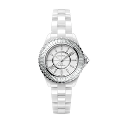 素材 ホワイト セラミック ホワイトゴールド ダイヤモンド ケース 高耐性ホワイト セラミック、18Kホワイトゴールド ベゼル 固定ベゼル、18Kホワイトゴールド、バゲットカット ダイヤモンド46個(約3.60カラット) ダイヤル ホワイト ラッカー ダイヤル、バゲットカット ダイヤモンド12個(約0.20カラット) リュウズ 非ねじ込み式リュウズ、18Kホワイトゴールド、ブリリアントカット ダイヤモンド1個(約0.10カラット) ブレスレット 高耐性ホワイト セラミック、18Kホワイトゴールド製3重折りたたみ式バックル |