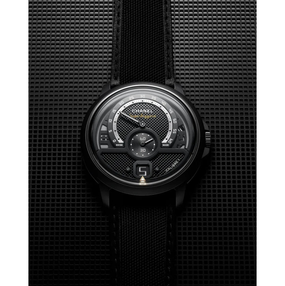高耐性マットブラック セラミック ステンレススティール (ブラックコーティング) ケースバック: サファイアクリスタル ステンレススティール ダイヤル: マットブラック ギョシェ 6時位置の窓に時刻表示 240°レトログラード分表示 ,“Superleggera” ロゴ リュウズ: ステンレススティール (ブラックコーティング) ブレスレット: ブラックナイロン ブラック カーフのトリミングとライニング バックル: ステンレススティール (ブラックコーティング) 3重折りたたみ式 |