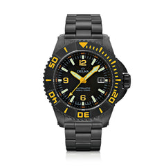 ブラックDLCステンレス・スティール・ケース 裏蓋: ブラックDLCステンレス・スティール、ブルーシャークの刻印 ベゼル: ブラックDLCステンレス・スティールベゼル、逆回転防止ベゼル ガラス: サファイア・クリスタル (反射防止加工) 文字盤: ブラックダイヤル、アプライドインデックスに蓄光塗料付き、日付表示 ストラップ: ブレスレット(純正) ラバーストラップ(付属) |