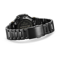 ステンレススチール バンド: 無垢バンド メタルバンド(ステンレススチール) ワンプッシュ三つ折れ式中留 ガラス: 無機ガラス 裏蓋: スクリューバック 表面加工: ケース:IP処理(一部DLC処理) / バンド:DLC処理 その他: ネオブライト |