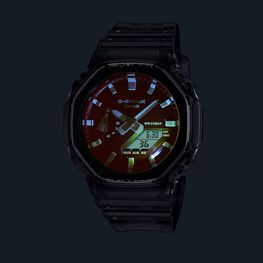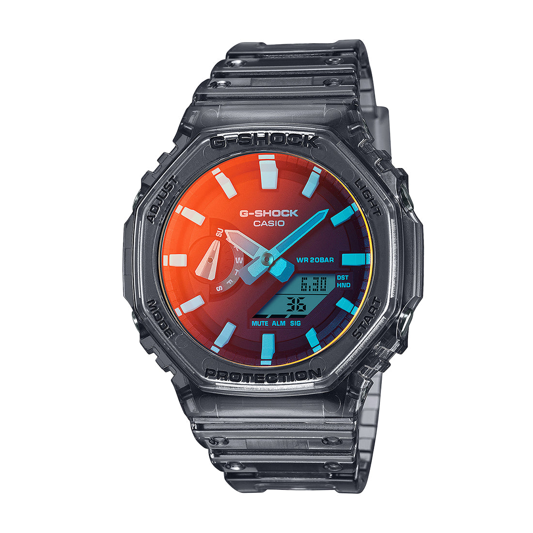 カラーはフレッシュなホワイト×ブルーで強い日差しがふりそそぐ白い砂浜を、クールなグレースケルトン×オレンジで日が落ちていく穏やかな砂浜をイメージしました。製品ひとつひとつで異なる輝きになるため、自分だけのアイテムとしてもご活用いただけます。 ベースモデルには、スクエアケースのDW-5600、オクタゴンベゼルのGA-2100、そしてビッグケースのGA-110の3機種を採用しています。
