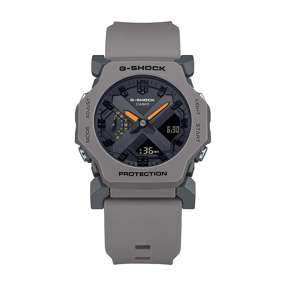 1983年の発売以来、飽くなき強さを求めて進化を続けるタフネスウオッチG-SHOCKから、時代のニーズに合わせて小型化、薄型化したミニマルなデザインのアナログ・デジタルコンビネーションモデルGA-2300です。