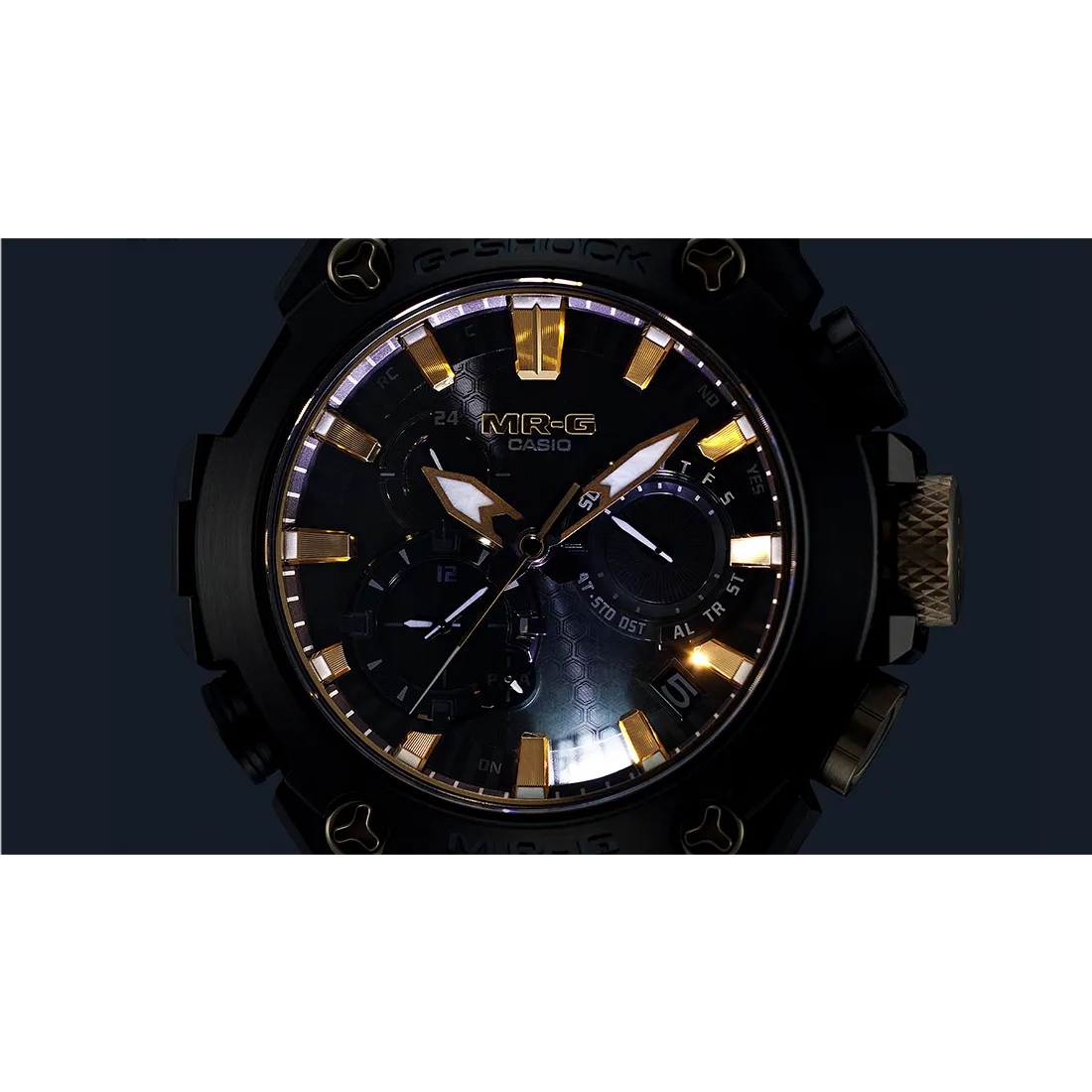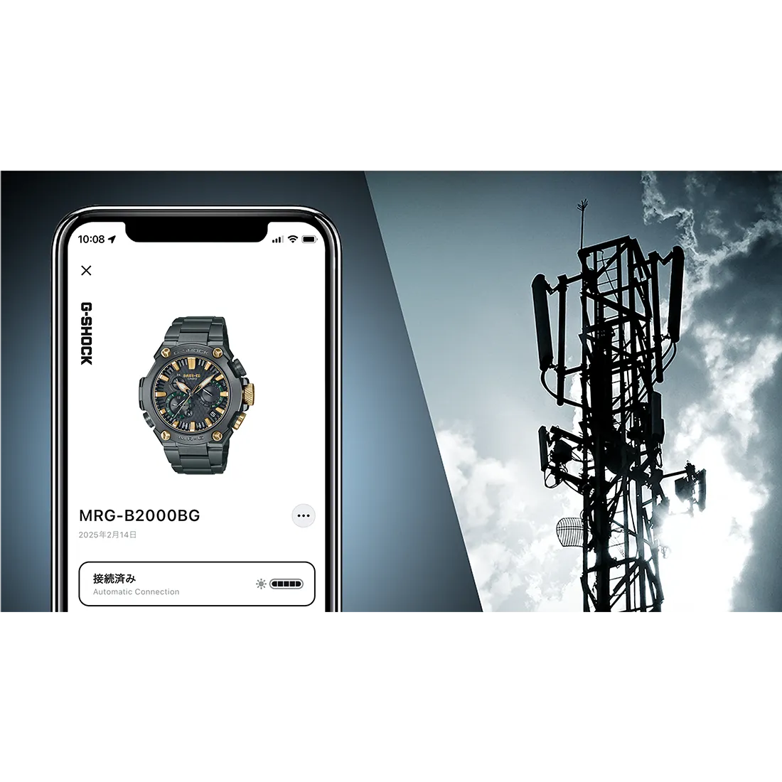 機能面では、電波受信機能とBluetooth® 通信機能によるスマートフォンとの連携に対応し、実用性も兼ね備えています。回路押さえ板に金めっきを施し、電気抵抗値を低減したMR-G専用モジュールを搭載しています。さらに、ザラツ研磨、二重の硬化処理、反射防止コーティングサファイアガラスを採用するなど、細部に至るまで強さと品質にこだわりました。