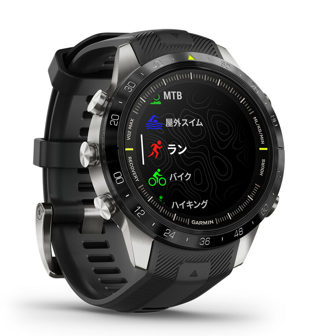 グレード5のチタンを使用して軽量化と強度を高め、魅力的な新しい1.2インチAMOLEDタッチスクリーンディスプレイを搭載し、スマートウォッチモードでは最大16日間、GPSモードでは最大48時間のバッテリーライフを実現しています。内蔵されたさまざまなスポーツアプリケーションを使ってトレーニングしたり、パフォーマンスメトリクスや持久力、スタミナのトラッキングで自分の限界に挑戦することができます。NextFork™を搭載したTopoActiveマップがプリロードされているので、次のトレイル交差点までの距離や、これから行くトレイルの名前を確認することができます。