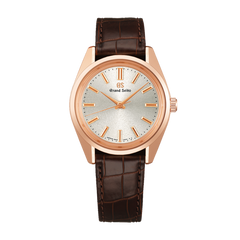 1967年の誕生とともに、グランドセイコー独自のデザイン哲学「セイコースタイル」を確立した44GS。この44GSが体現した光と陰の間に生まれる無数の表情を描く構造を受け継ぎ、現代の解釈を加えた「44GS現代デザイン」のメカニカルウオッチです。36.5mm径のケースには、18Kピンクゴールドを採用。 ダイヤルに施されたのは、グランドセイコーのメカニカルウオッチの製造を担う「グランドセイコースタジオ 雫石」から望む、雄大な岩手山の山肌を繊細な型打ちにて再現した「岩手山パターン」。この岩手山パターンと冬の白をイメージしたダイヤルカラーで、荘厳なる岩手山の静謐な雪景色をダイヤルの中に描き出しています。 ムーブメントは、最大巻上時約72時間(約3日間)持続の手巻メカニカル「キャリバー9S64」を搭載しています。