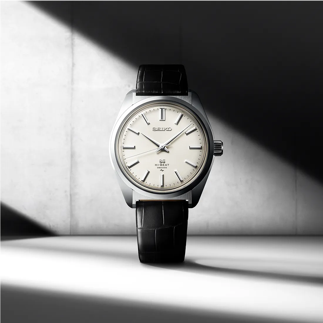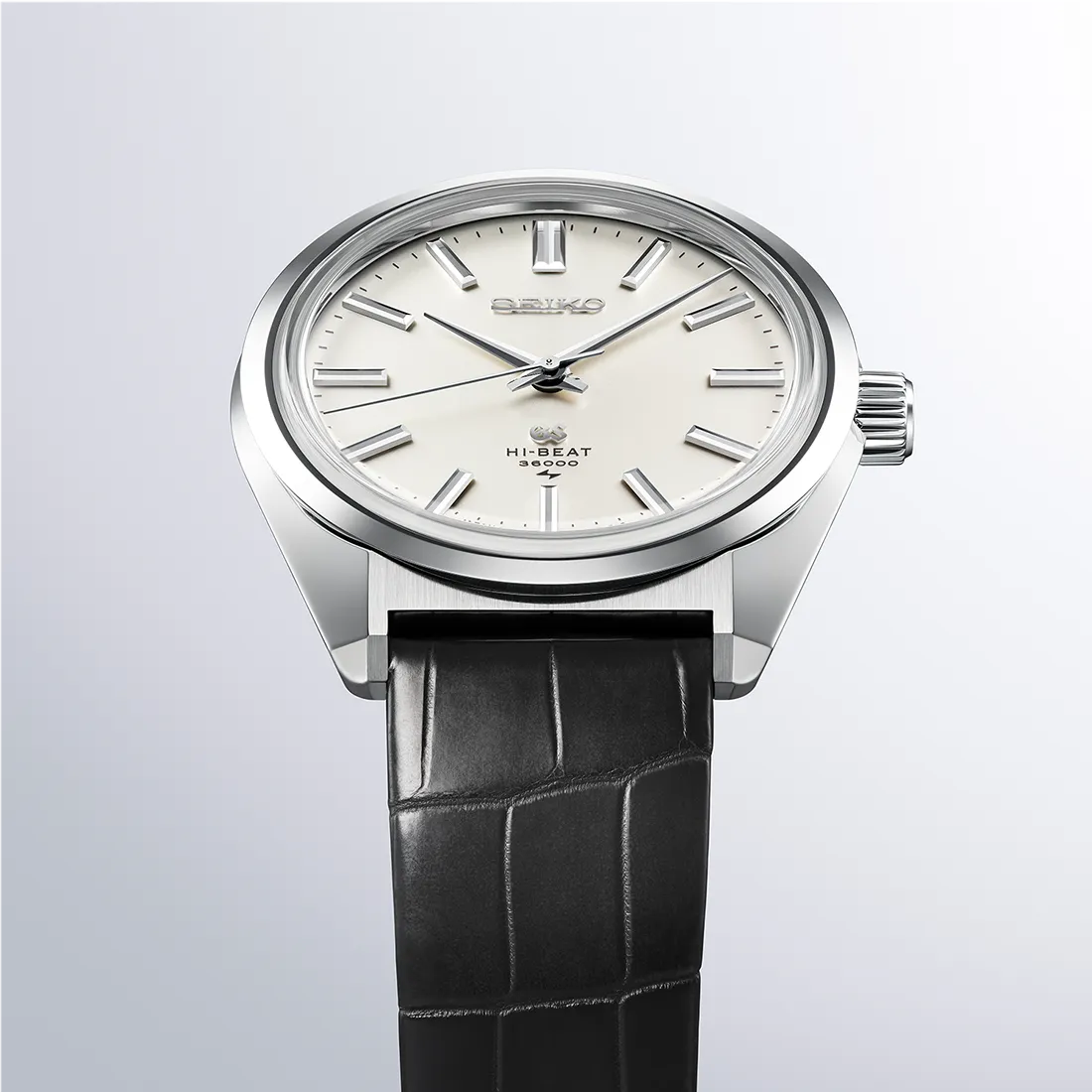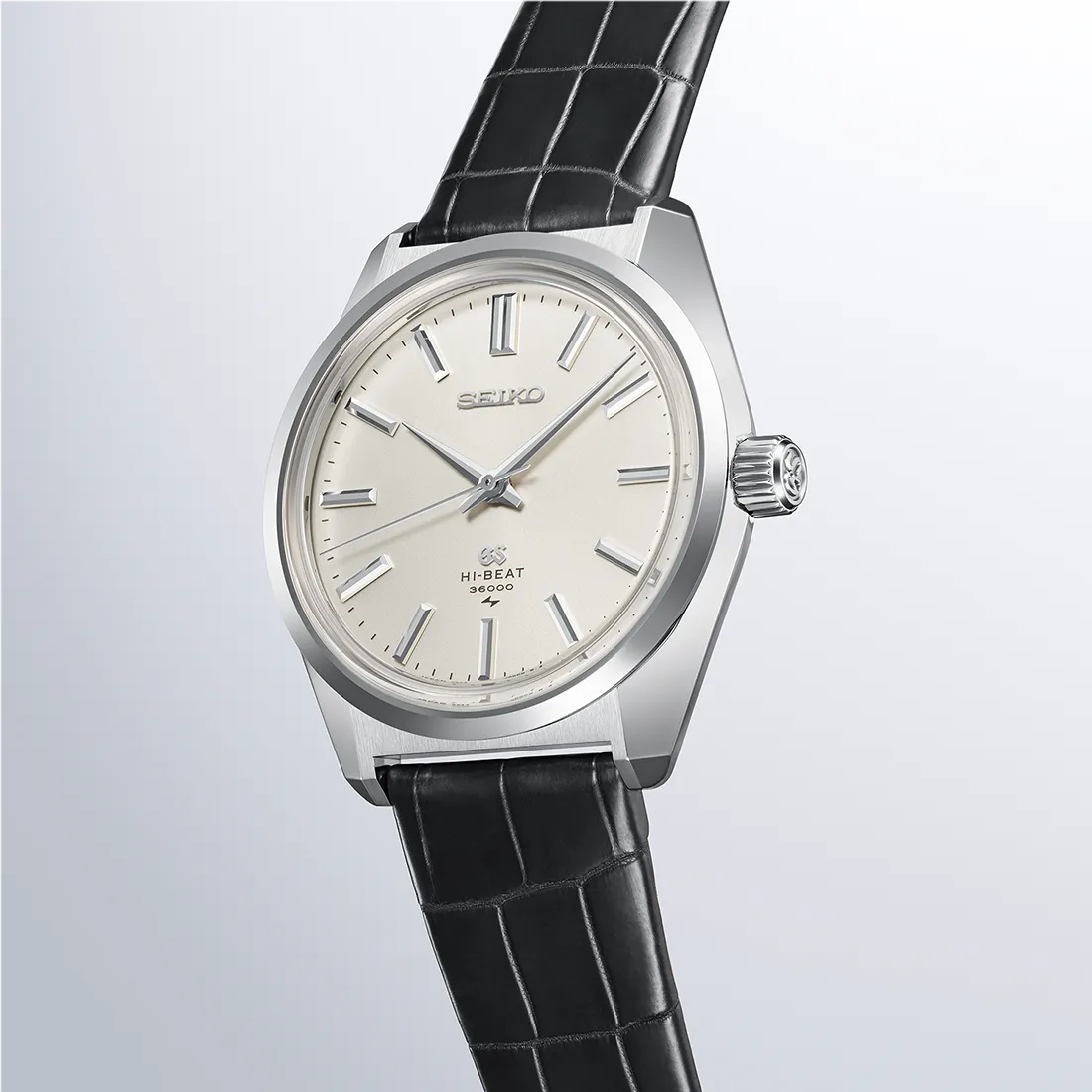 ダイヤルの12時位置には「SEIKO」、6時位置にはオリジナルモデルと同じ書体で再現した「GS」のロゴと「HI-BEAT」の文字、ムーブメントの毎時振動数を示す「36000」の数字、そしてオリジナルモデルの発祥の地を示す「第二精工舎」のロゴマークが配され、1968年当時の45GSのデザインを再現しています。