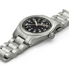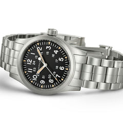 ミリタリーウォッチの元祖が、軽快な付け心地のステンレススチールブレスレットでスポーティーなスタイルに昇華しました。ハミルトン専用H-50手巻きムーブメントを搭載した新しい「カーキ フィールド メカ」は、期待を裏切ることのないタイムピースです。高い機能性を誇るラギッドな38mmのフィールドウォッチが冒険心を掻き立てます。